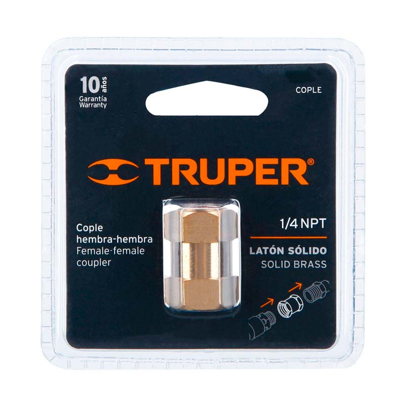Cople de latón, tipo FF, cuerda 1/4 NPT, Truper