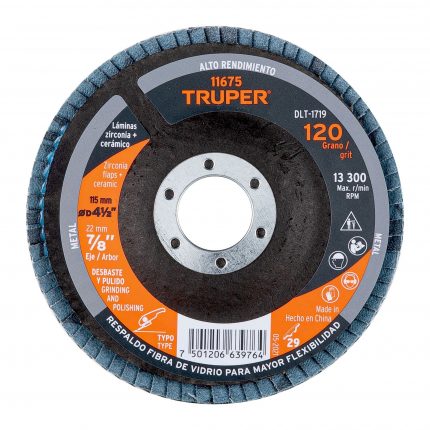 Disco 7″ laminado grano 40 centro 7/8″, Truper