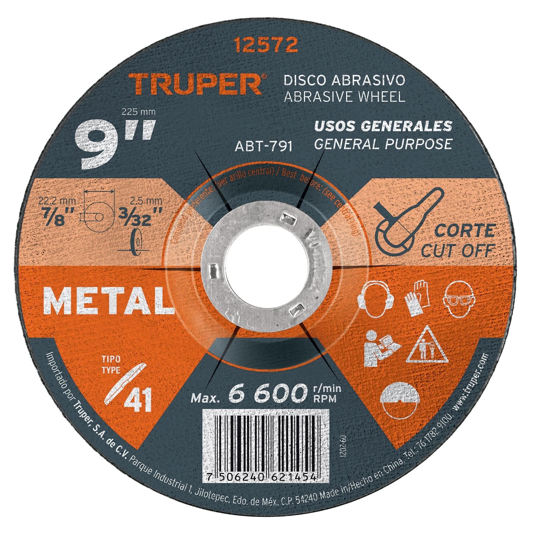 Disco de 9″ para corte de metal, tipo 41, Truper