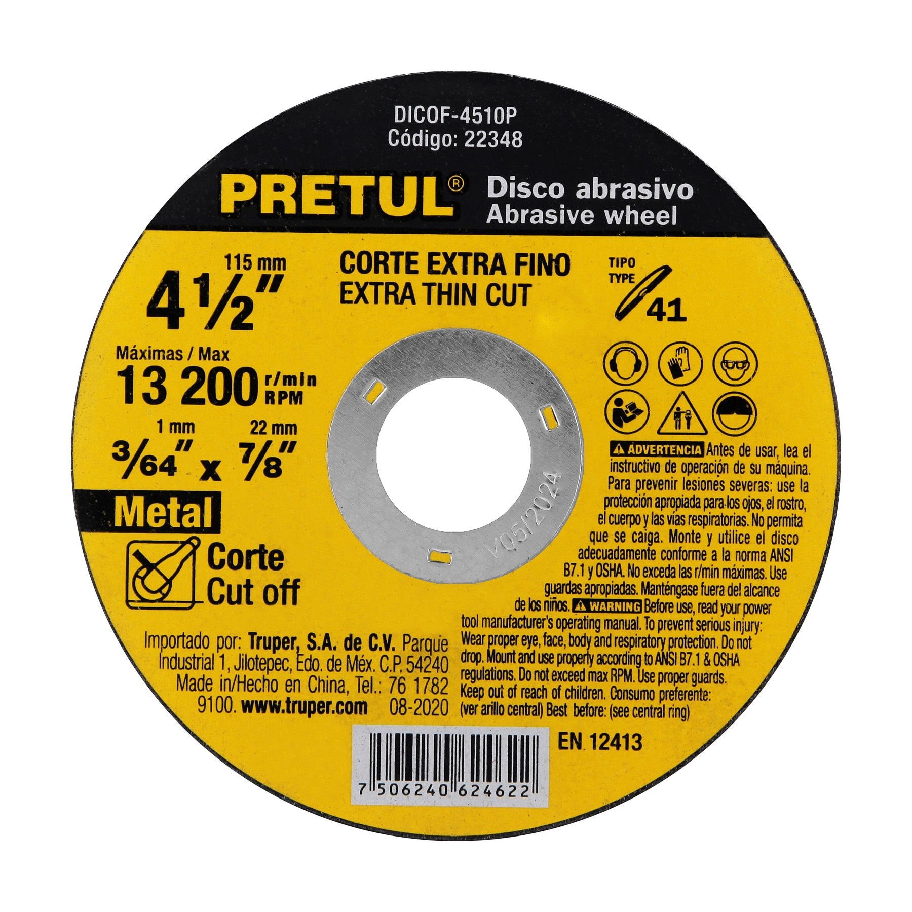 Disco Tipo 41 de 4-1/2″ x 1 mm corte fino de metal, Pretul