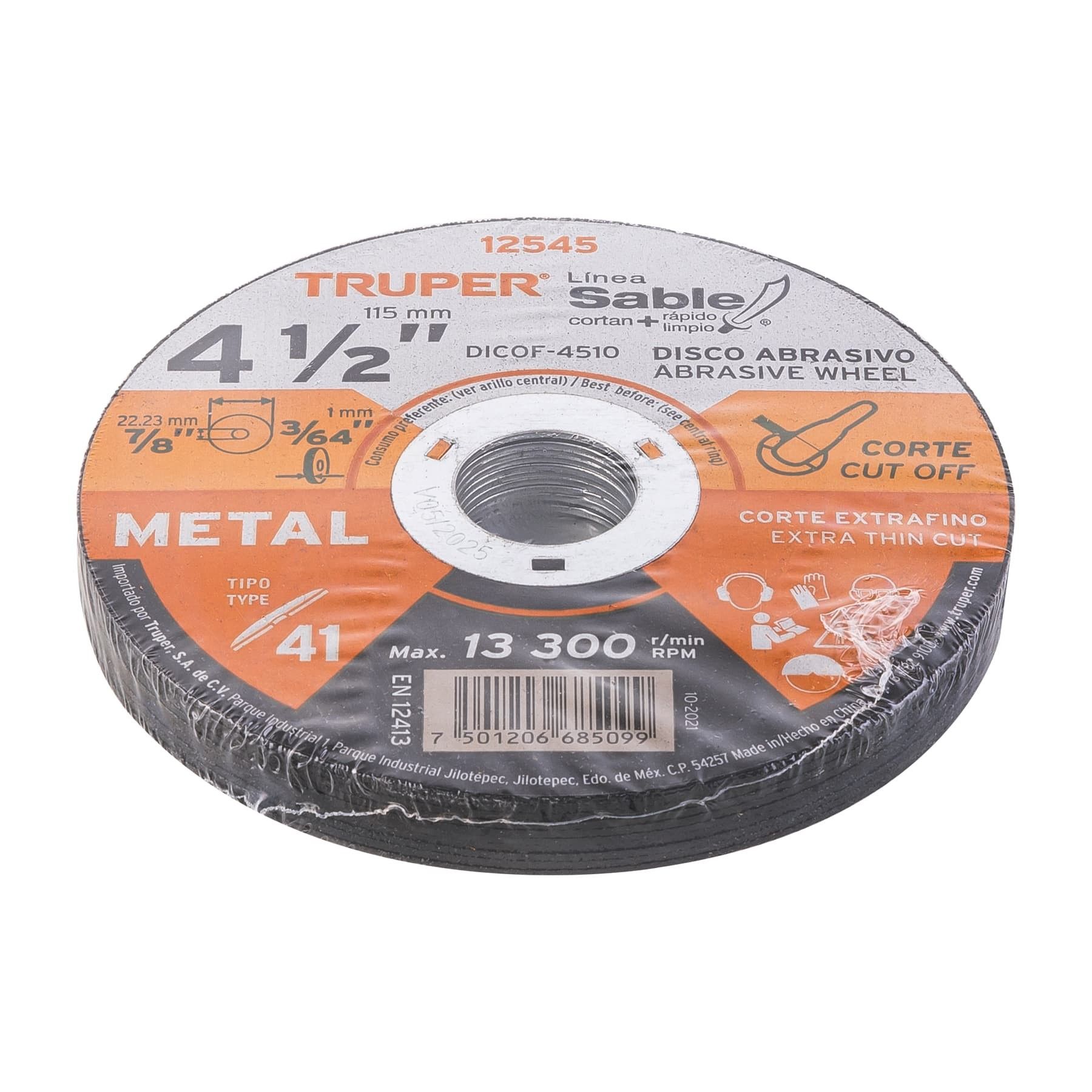 Disco Tipo 41 de 4-1/2″ x 1 mm corte fino de metal, Sable