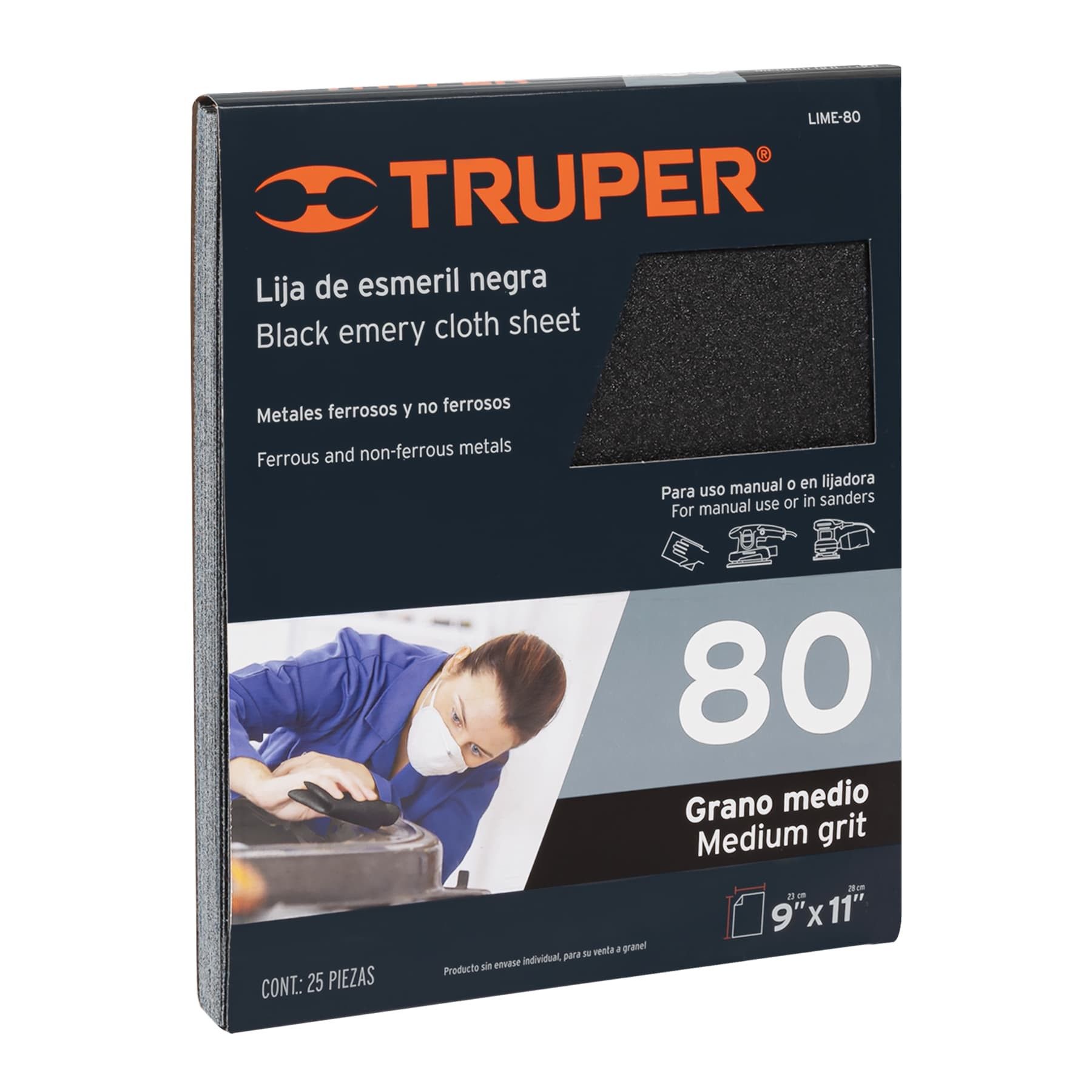 Este Lija de esmeril negra grano 80 de óxido de aluminio, Truper puede ser suyo a solo S/ 4.50!