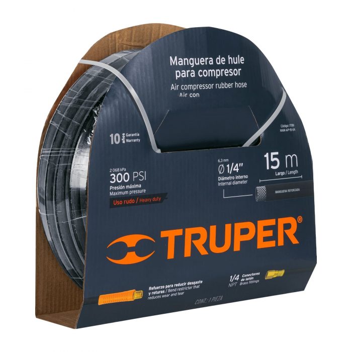 Rollo de 15 m de manguera 1/4″ de hule para compresor
