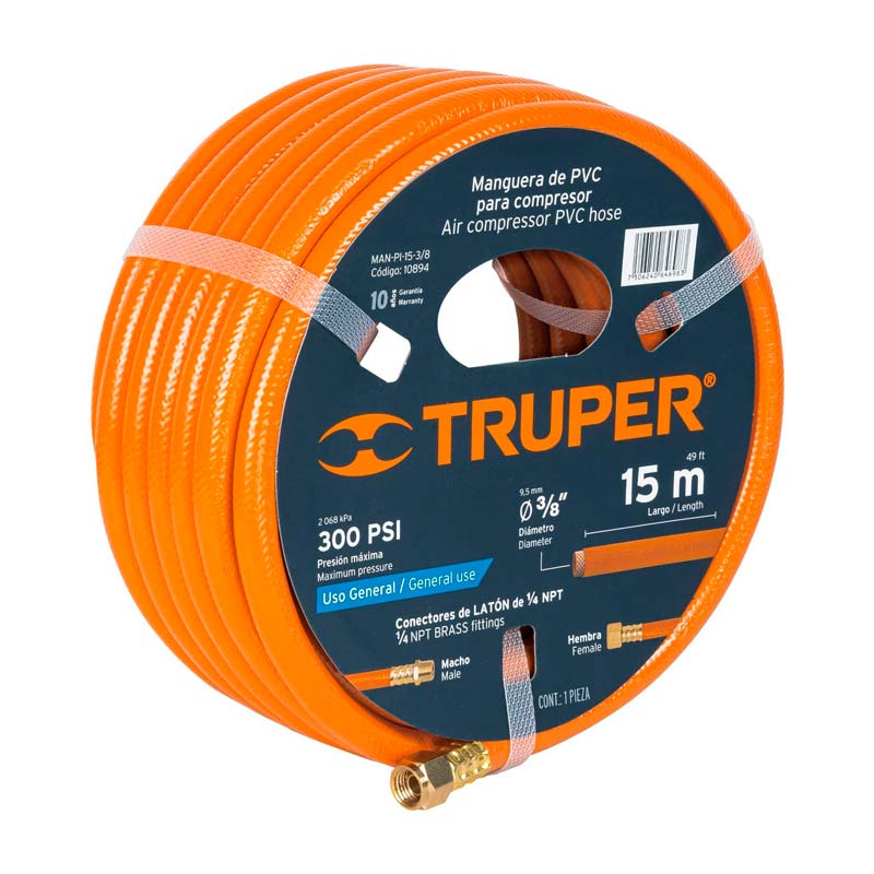 Rollo de 15 m de manguera 3/8″ de PVC para compresor, Truper
